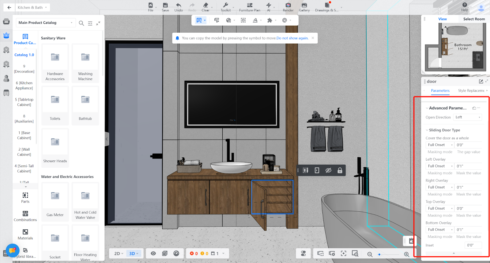 You can also choose the direction of the cabinet doors, such as left or right, by going to "Advanced Parameters" and selecting "Door Direction".