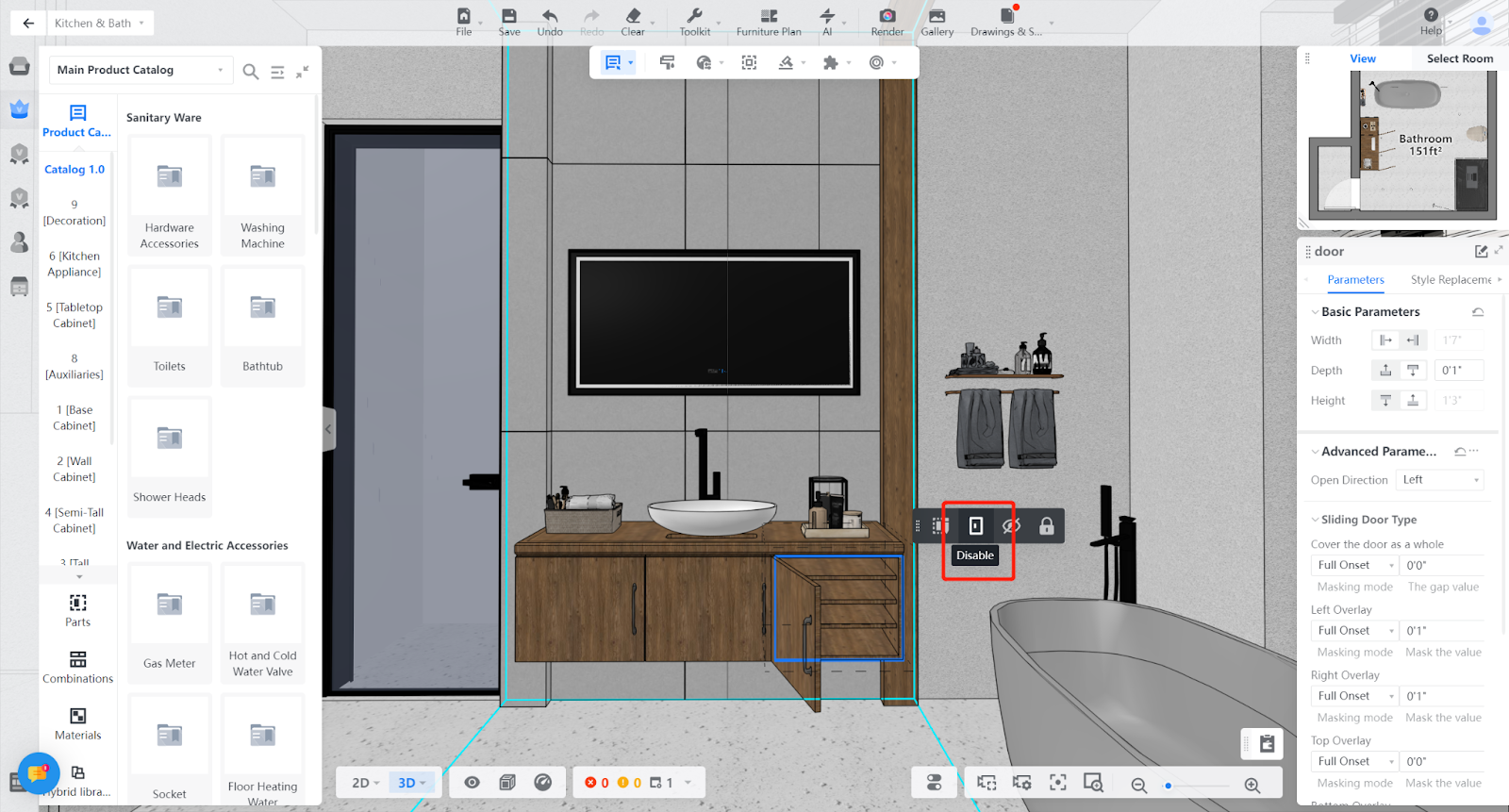 After opening the cabinet door, you can also select "Close" by double-clicking on the door panel to close it.