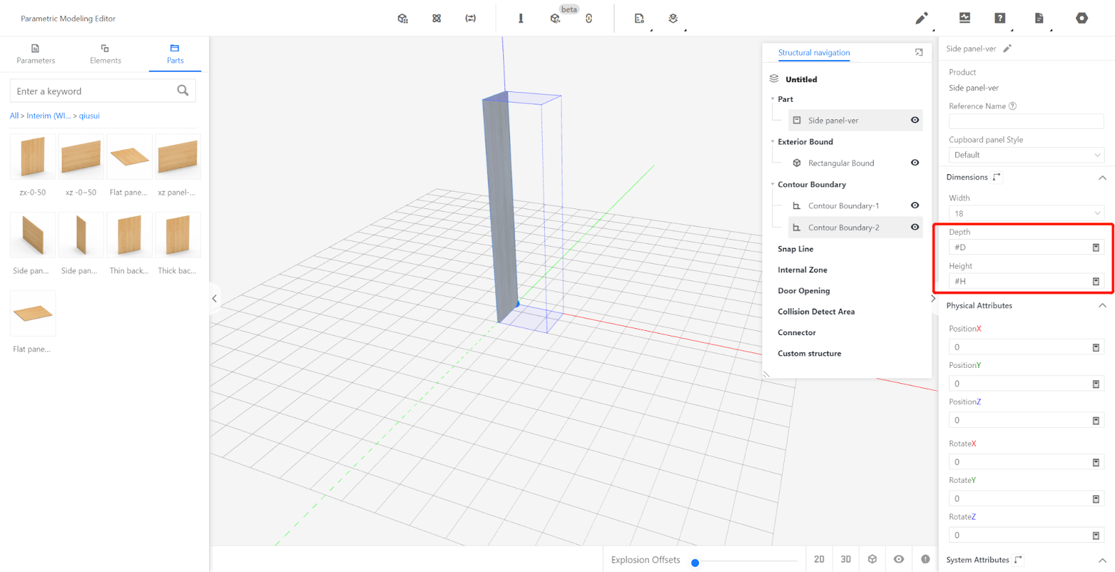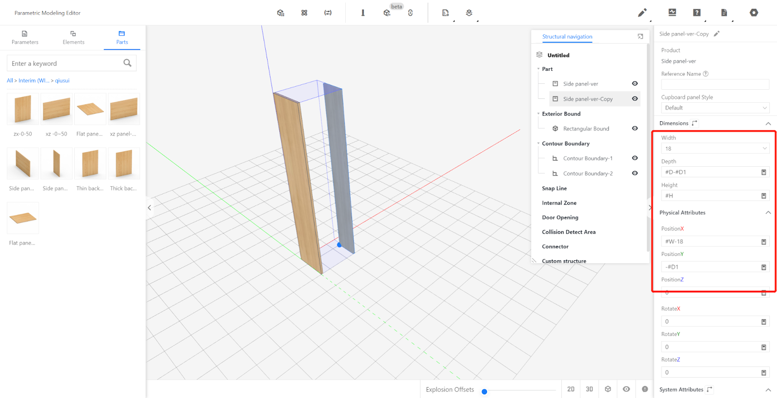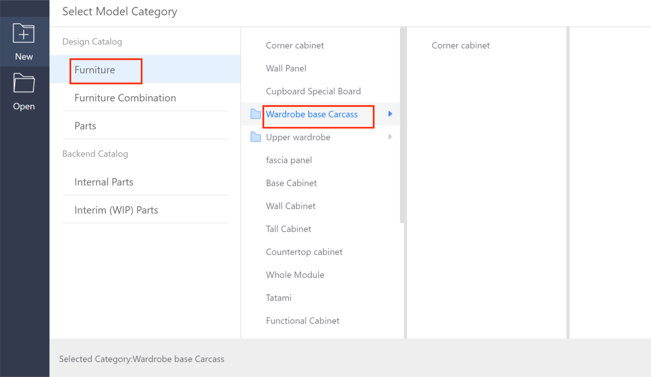 Enterprise Catalog-Custom Products-Product Catalog- Kitchen&Bath, Custom Furniture-Create Asset- Click “Parametric Model Library”- New- Interim Parts- Cupboard panel