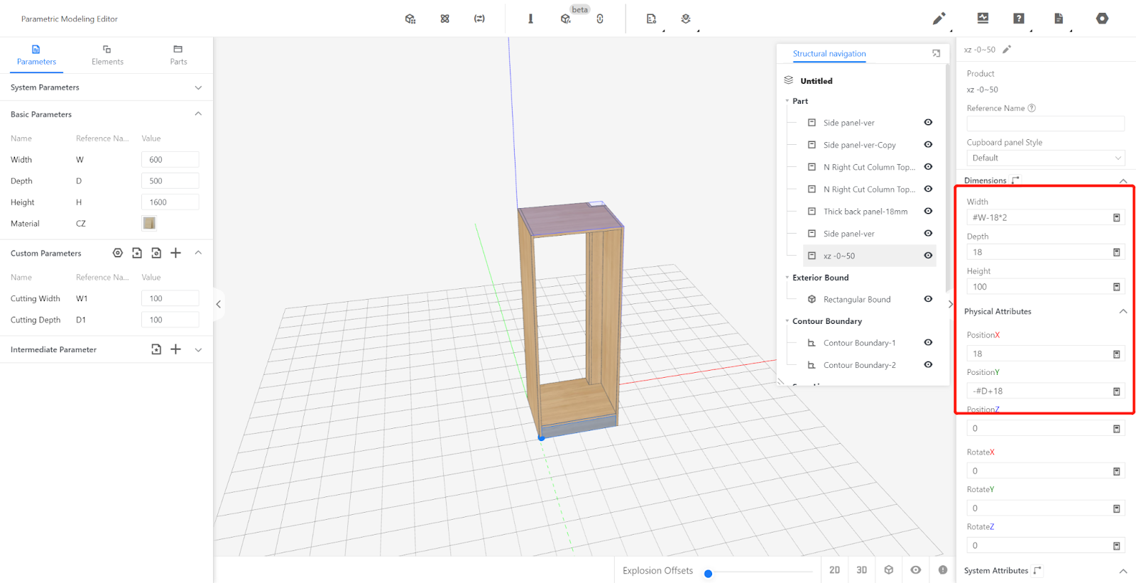 Click on the submodel library - Semi-finished Products Library, call the back panel and set parameters.