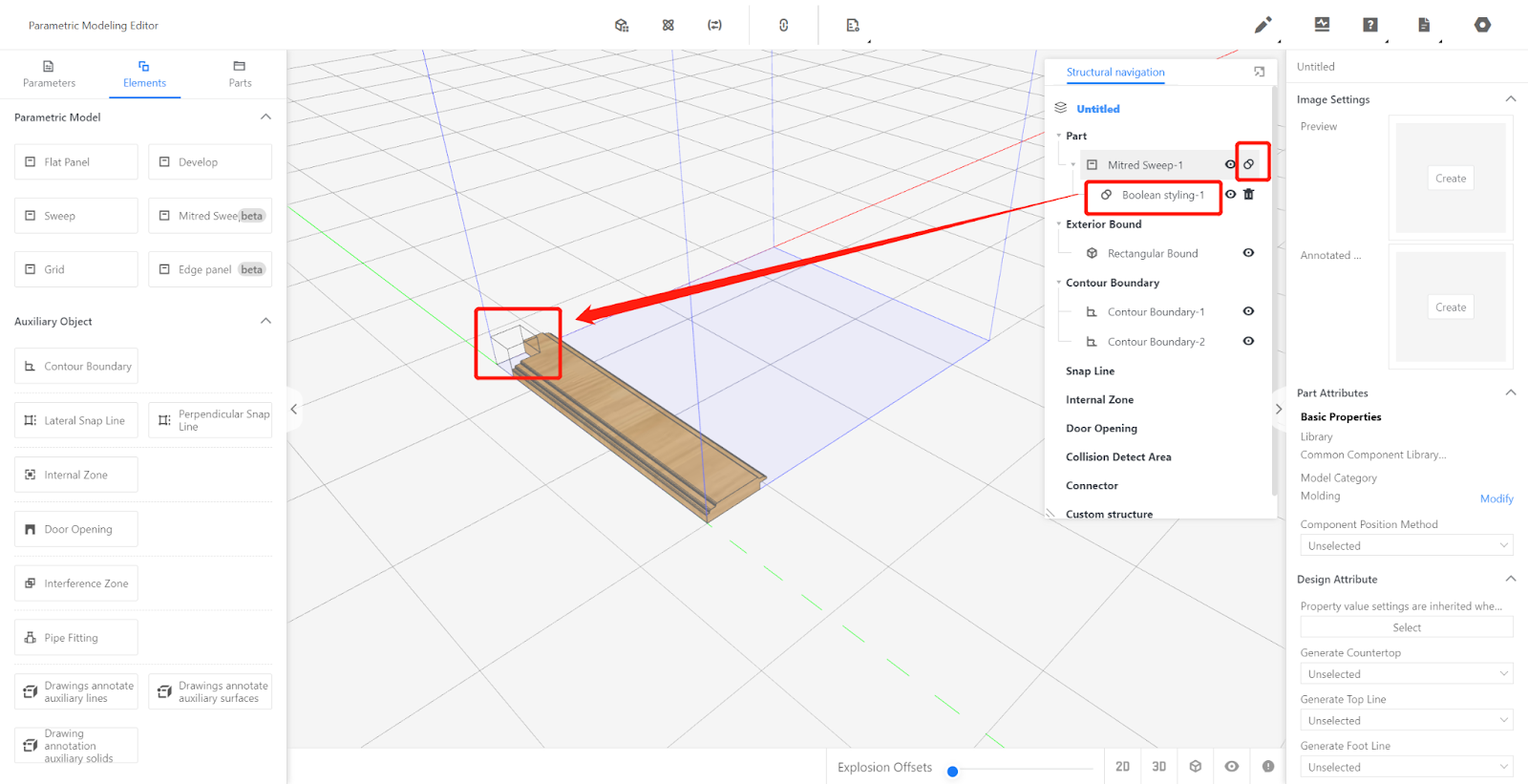 The Boolean modeling block is consistent with the editing interface of the general flat panel component.