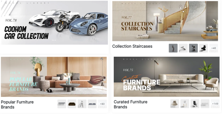 New brands updated:FENDI, Ligne Roset, Safavieh, Flexform, BoConcept, Baker Furniture, Muuto, Natuzzi, GRAMERCY HOME, Come Home, https://www.coohom.com/model-library