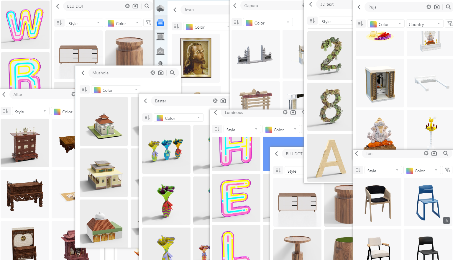 Recently, we have updated our selection of keywords based on feedback from our users. These keywords include: Mushola, Jesus, Cross, Church, Easter, Roof, Kneeler, Gapura, Luminous, Industrial, 3D Text, Landscape, Pergola, Religion, Puja, Jali, Altar, Ancestral, Ikea, Buro, Baño, Parrillero, ZLINE, Bixitu, BLU DOT, Ton,xray, bible, warddrop, kitchenette, eyeball, void, krishna, rafters, hvac, compressor, bedlamp, katana, ketchup, warddrop, photoshoot, jollibee, bleacher, bonfire, setup, matress, dua jewlery, hindu, photobooth, lamella, latrine, bidet, icemaker