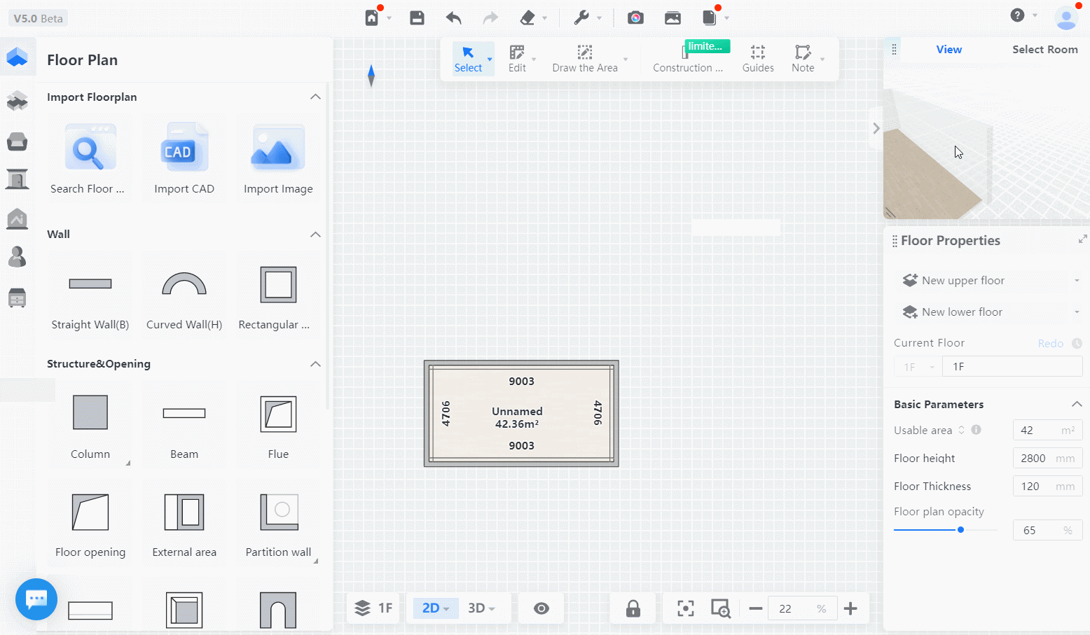 There have been some adjustments to the CAD floor plan setup, and some functions have moved. Changes to bottom bar buttons: They now expand the floor plan settings panel instead of opening a functional menu.