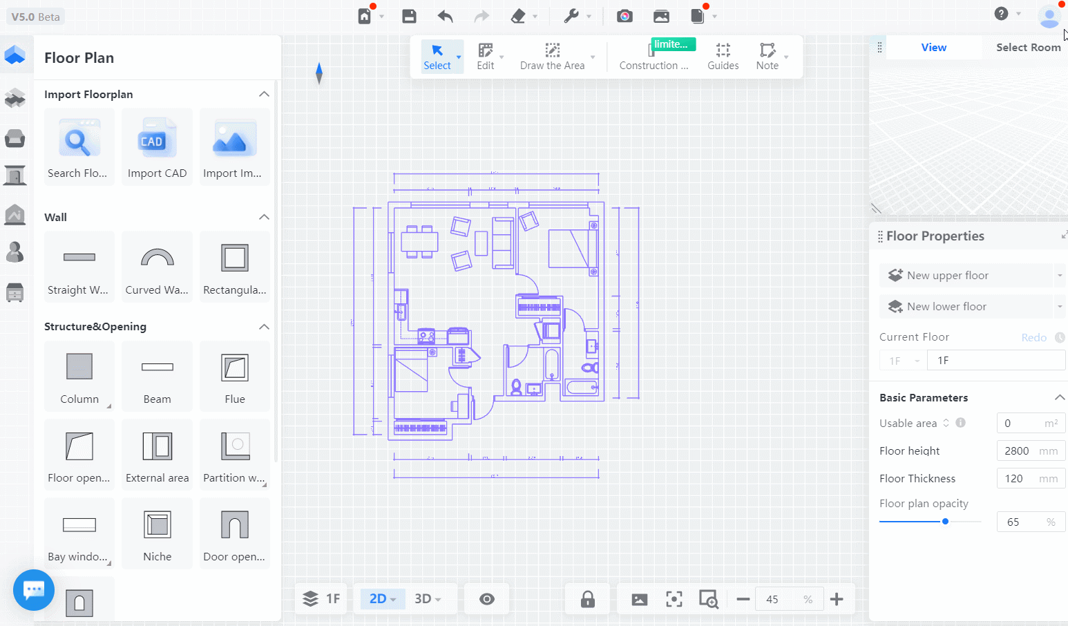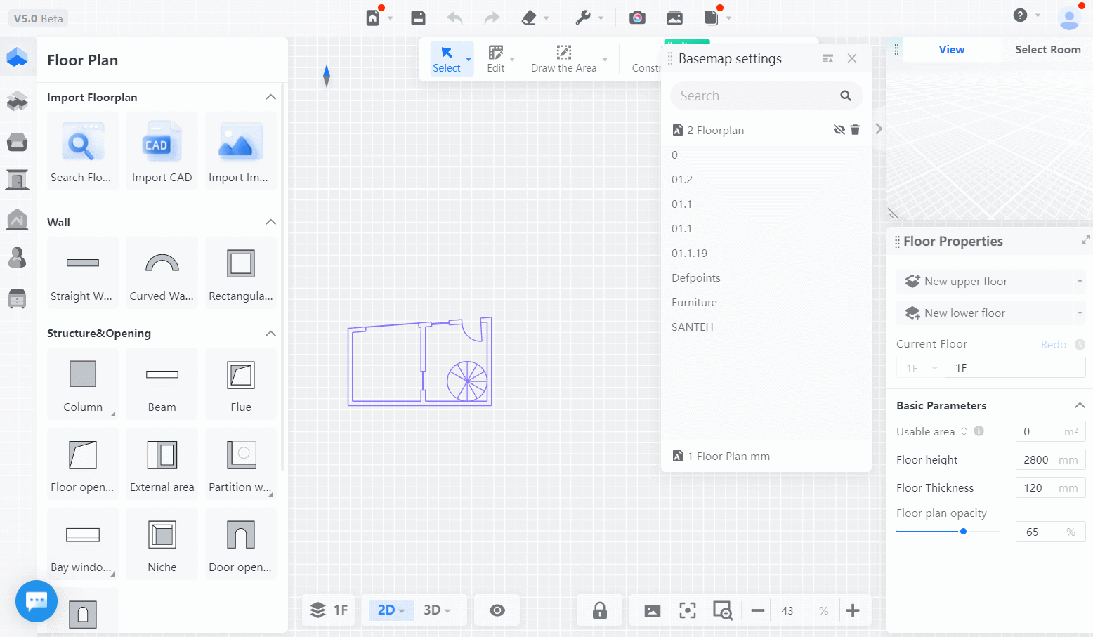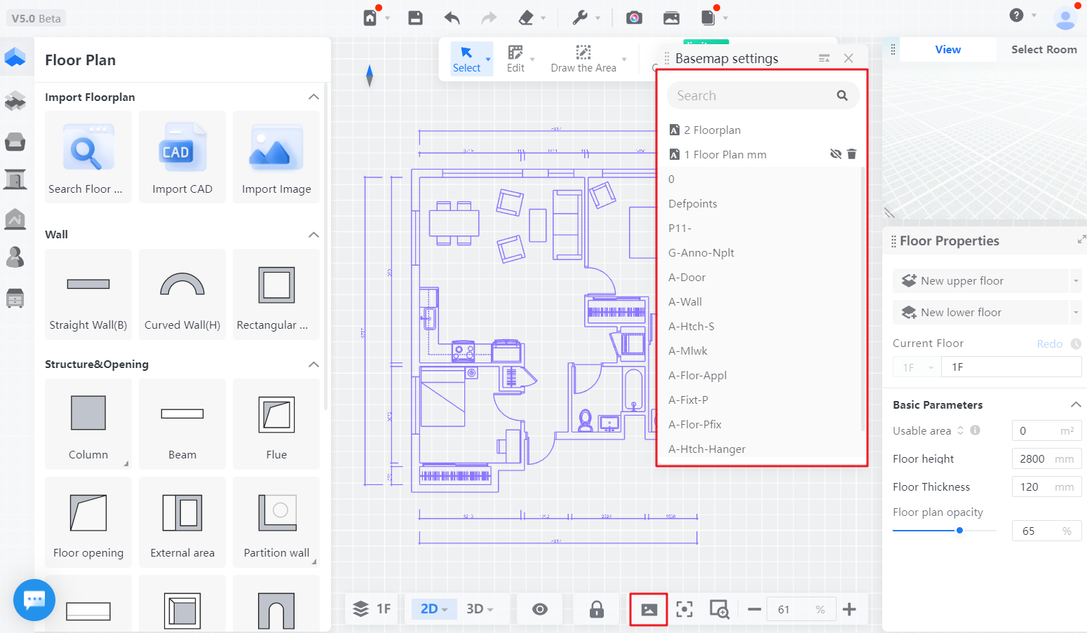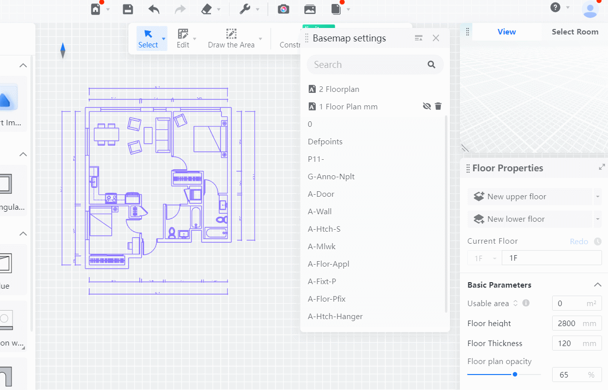 Layer management: In the floor plan settings panel, you can show or hide layers in each CAD file.