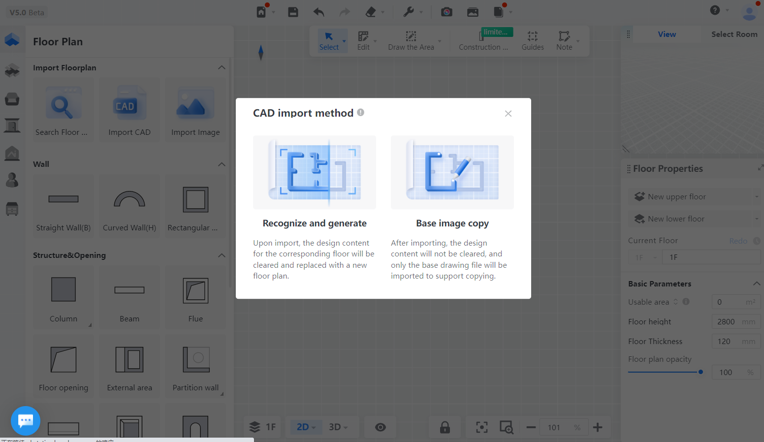 Generated Design: When imported, this will clear the corresponding floor's design. For example, if there are two floors (1F and 2F) in the current design, importing a new CAD file for 2F as Generated Design will clear the existing design for 2F but not affect 1F.