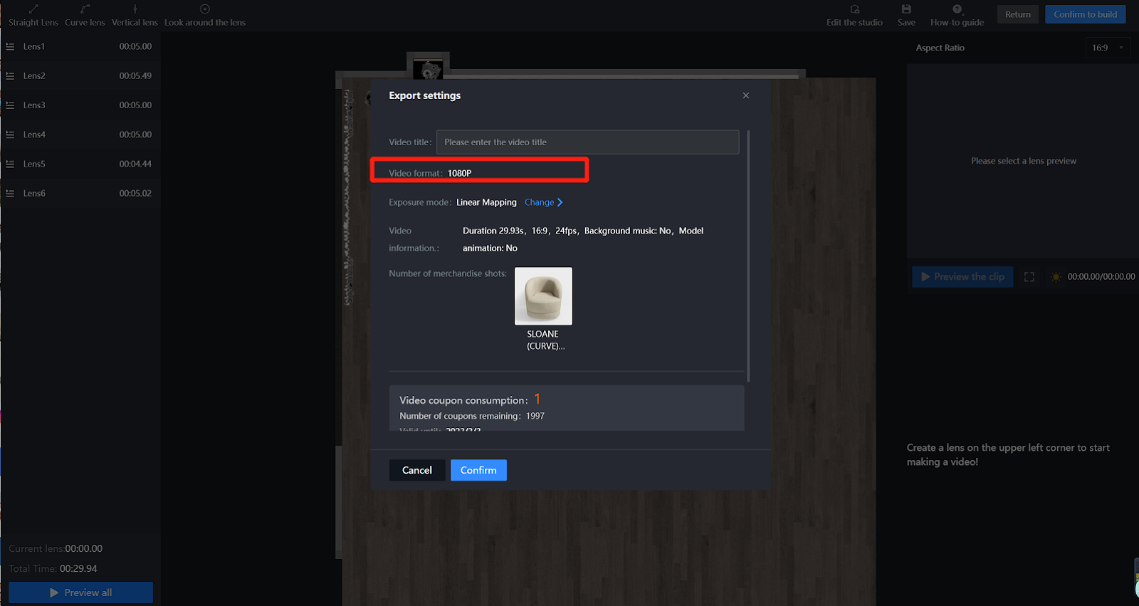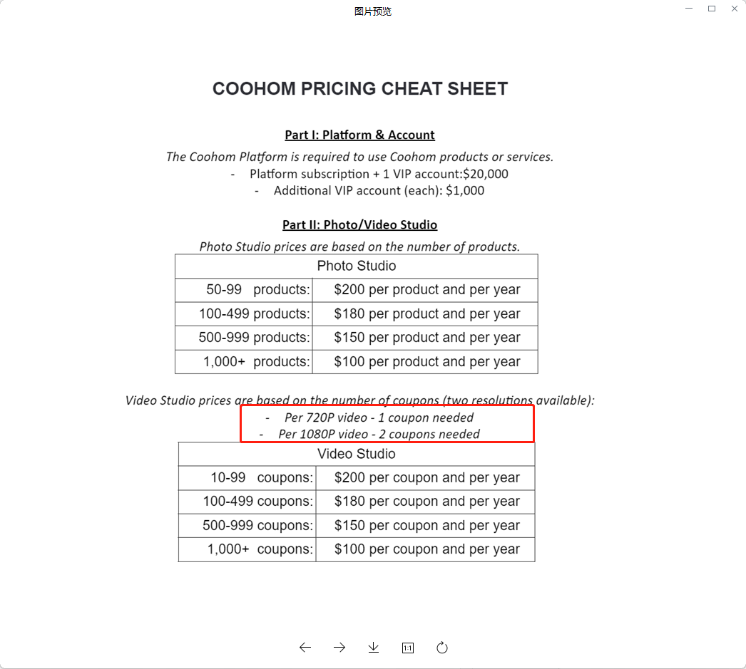 Video Studio has two resolutions. One is 720P, consuming one coupon per video. The other is 1080P, consuming two coupons per video.