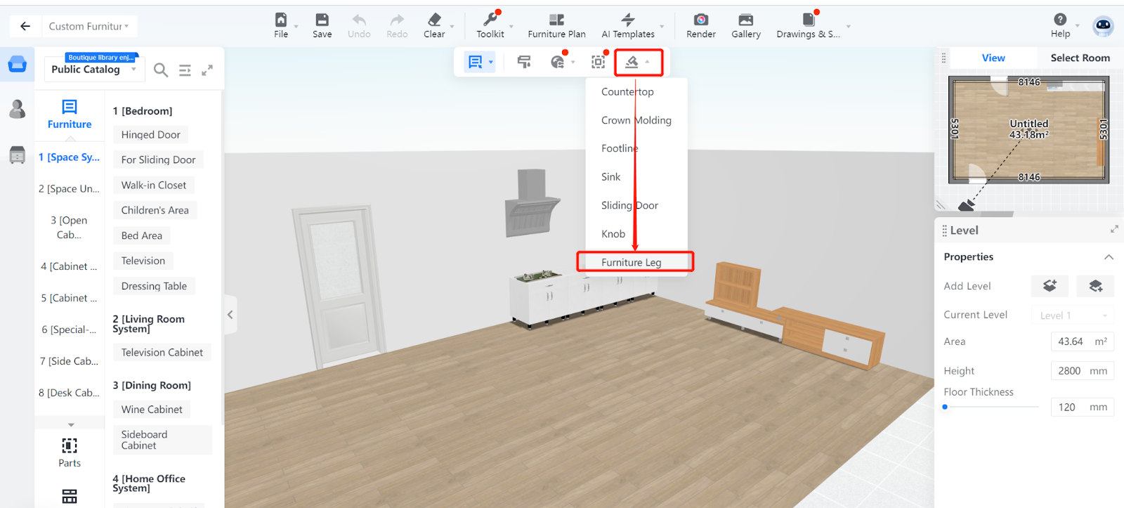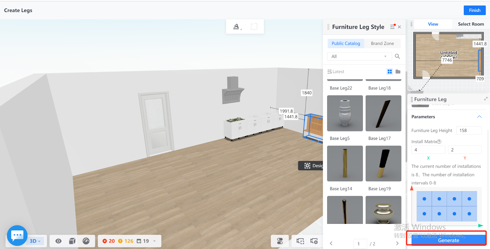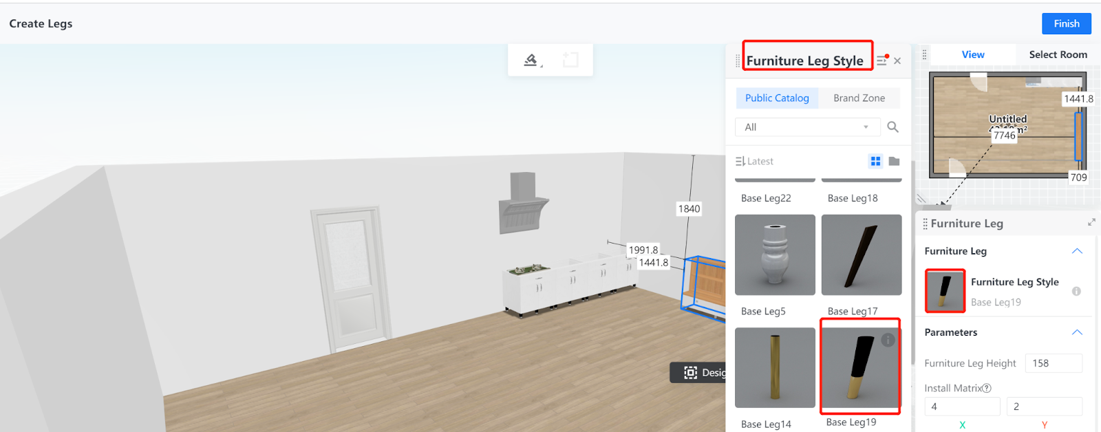 4. Next, in the right-side Furniture Leg pane, choose the style of furniture legs you want to generate. You can also adjust its height.