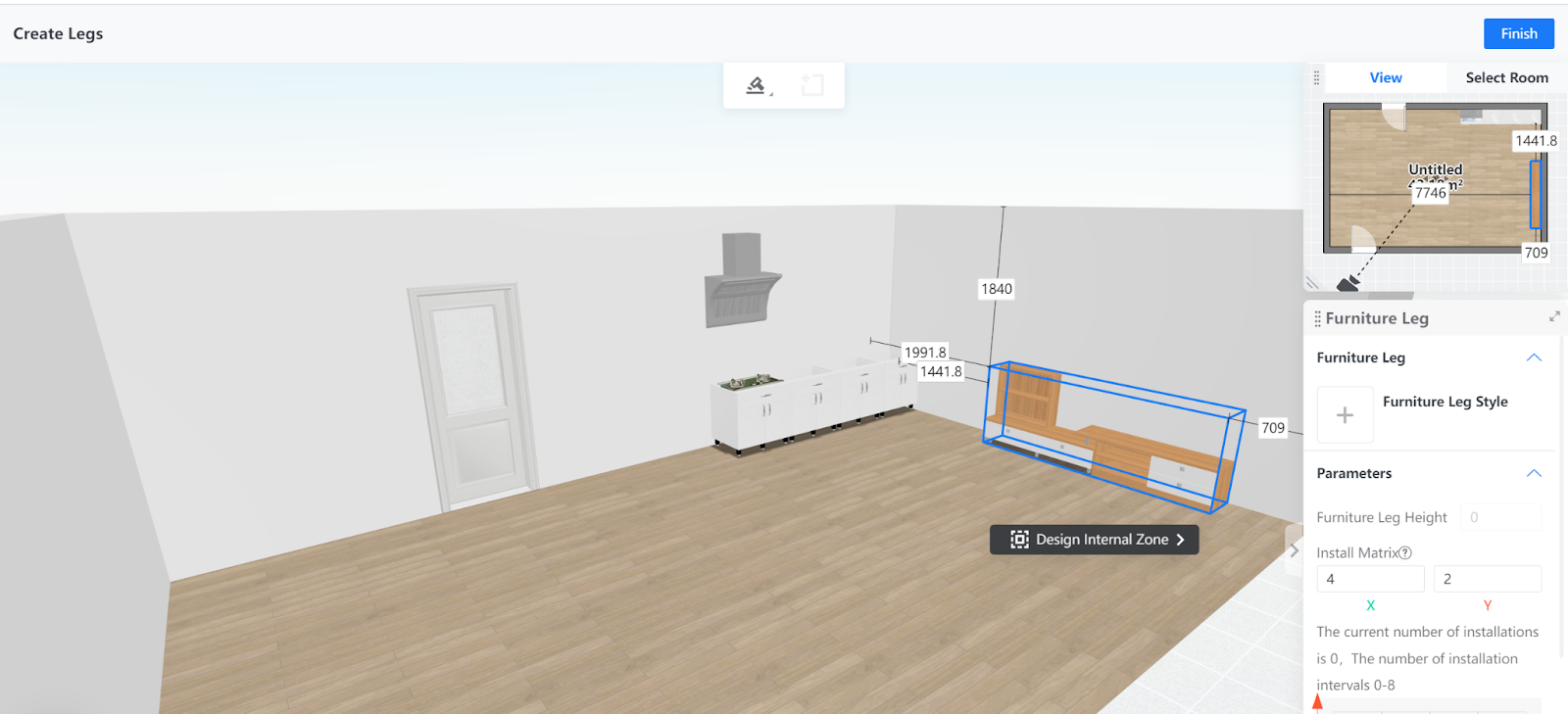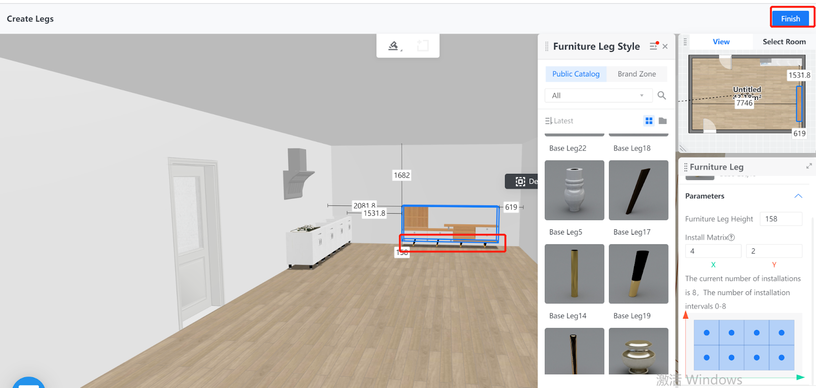 7. The furniture legs are then generated based on the configurations. You can click the Finish button on the top right corner of the page to exit the feature.