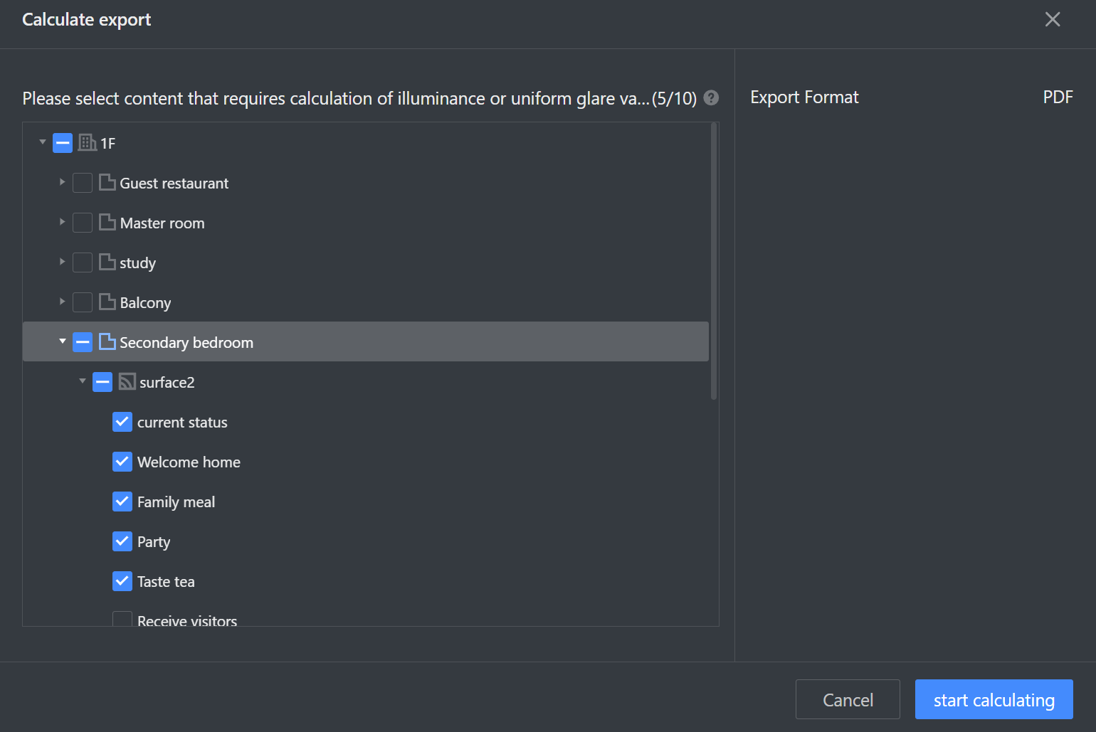 a.Select the calculated surface and the scene mode to be calculated, and click Start Calculating.