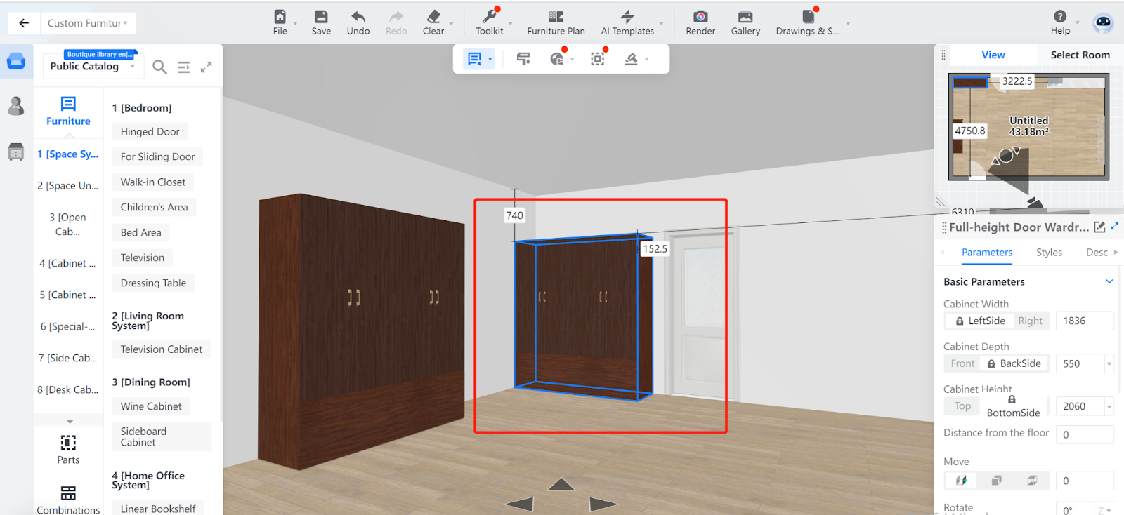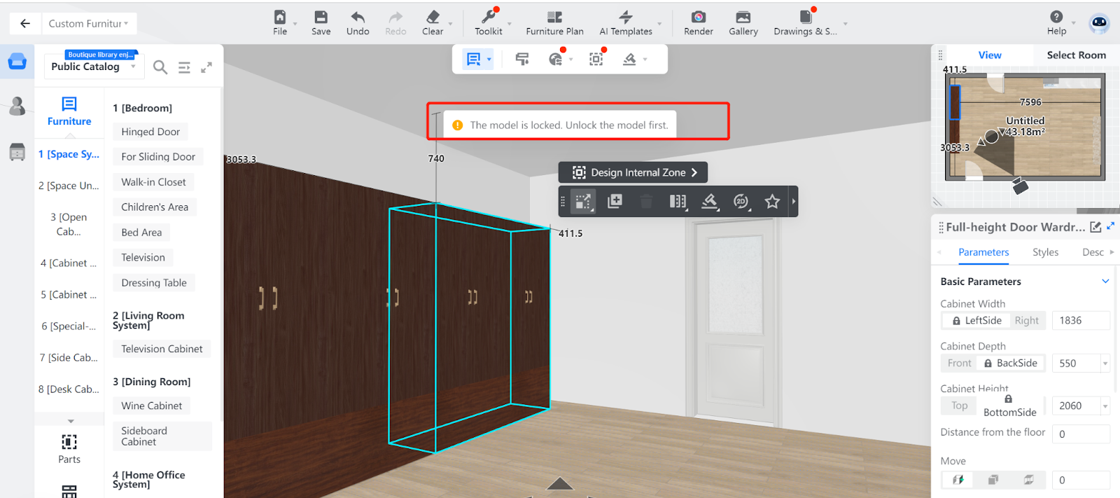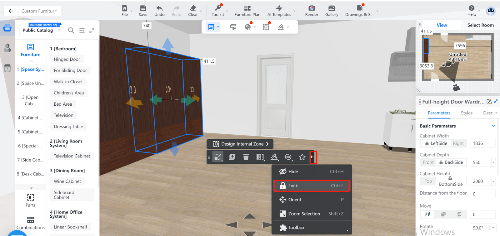 5. Afterwards, the target Closet is locked, meaning you cannot drag or drop the furniture in the scenario any more unless you unlock this item.