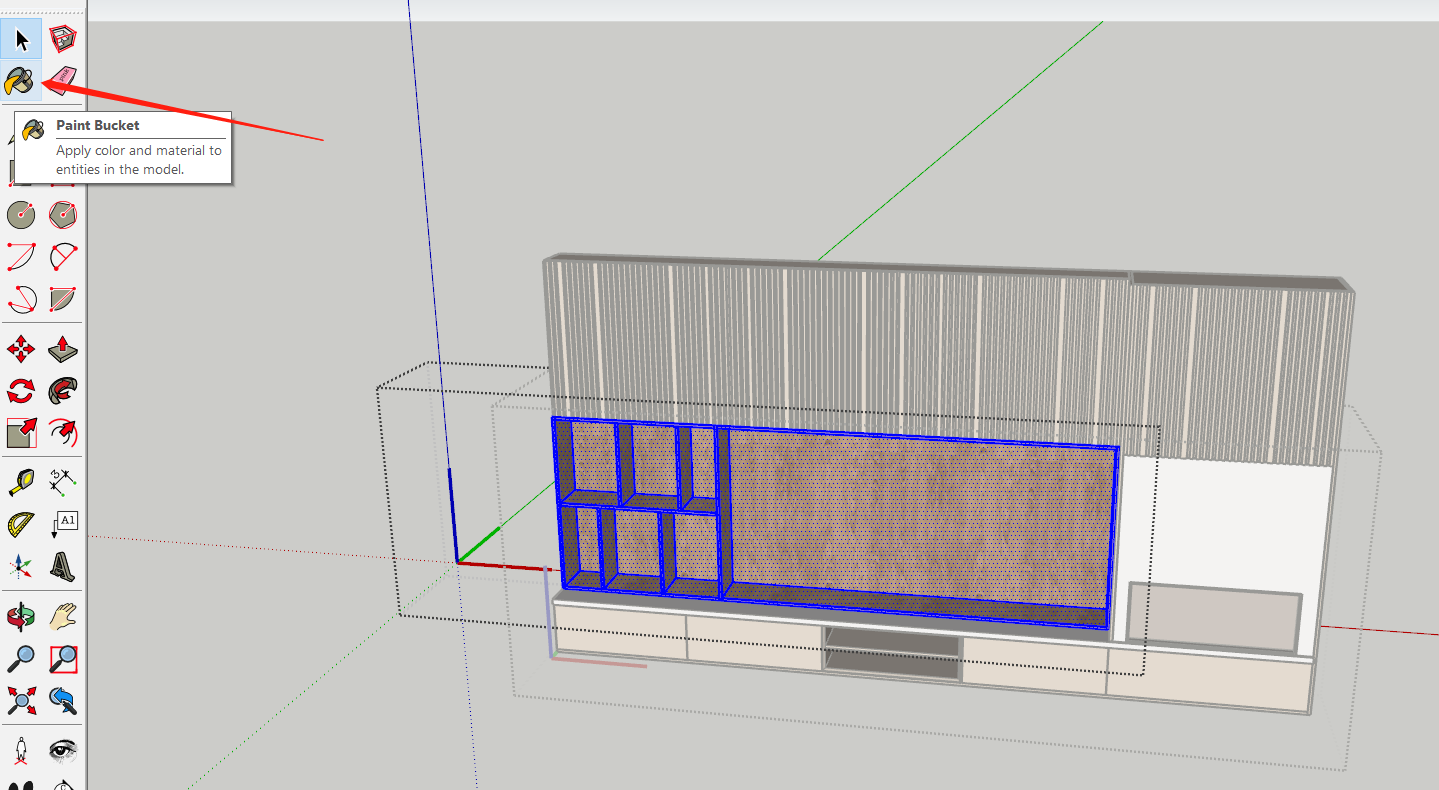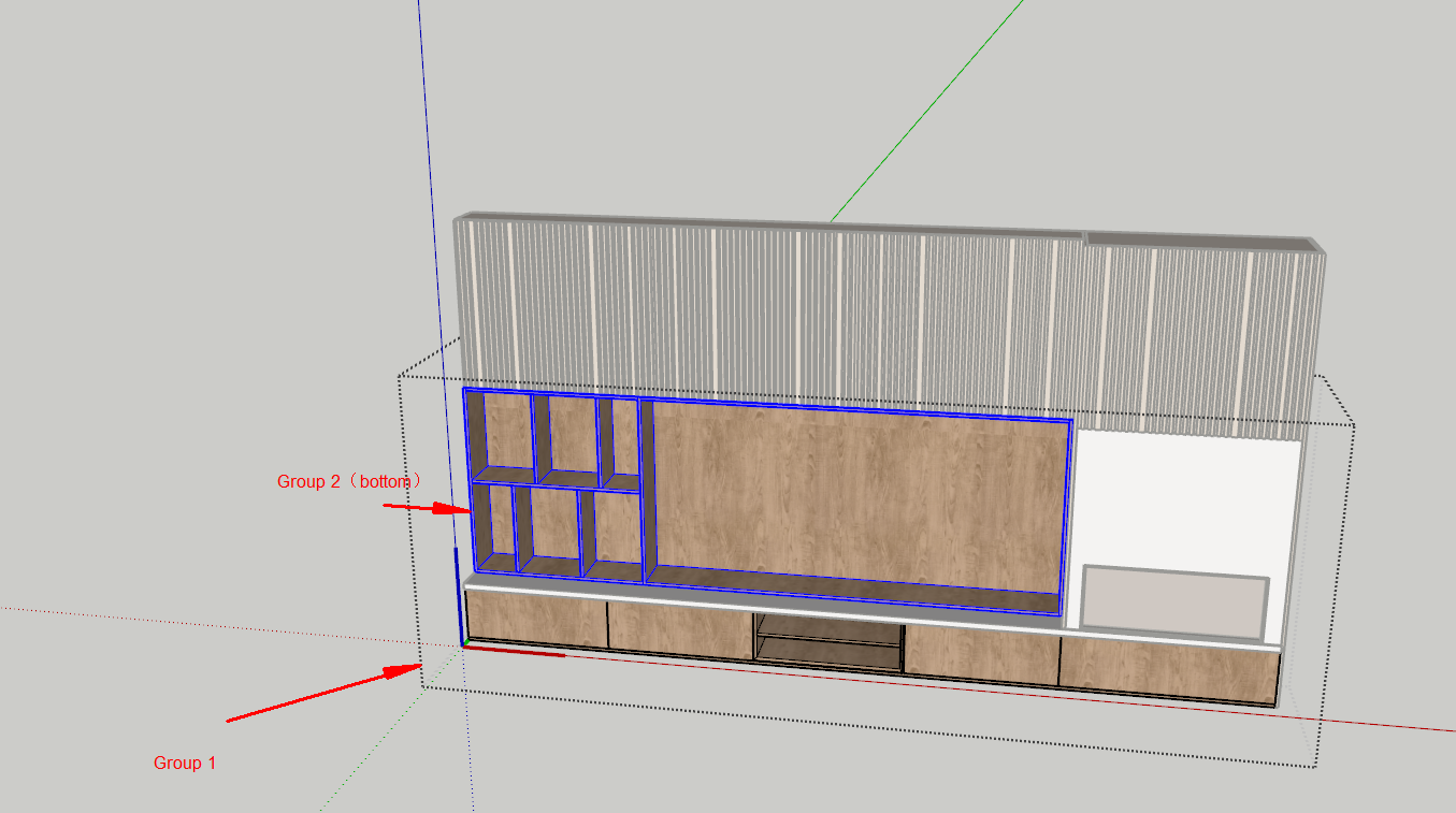 Double click to enter the model group, select the faces need to be edited(make sure to select in the bottom group);