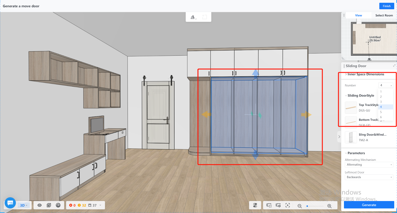 【Step 3】Select the style of sliding doors and click "Generate"