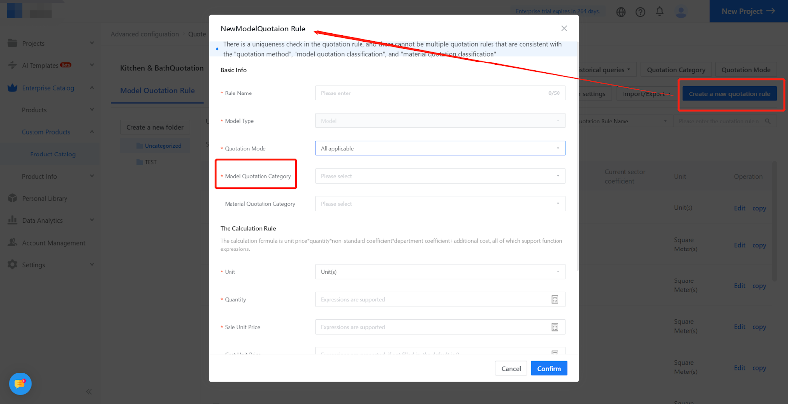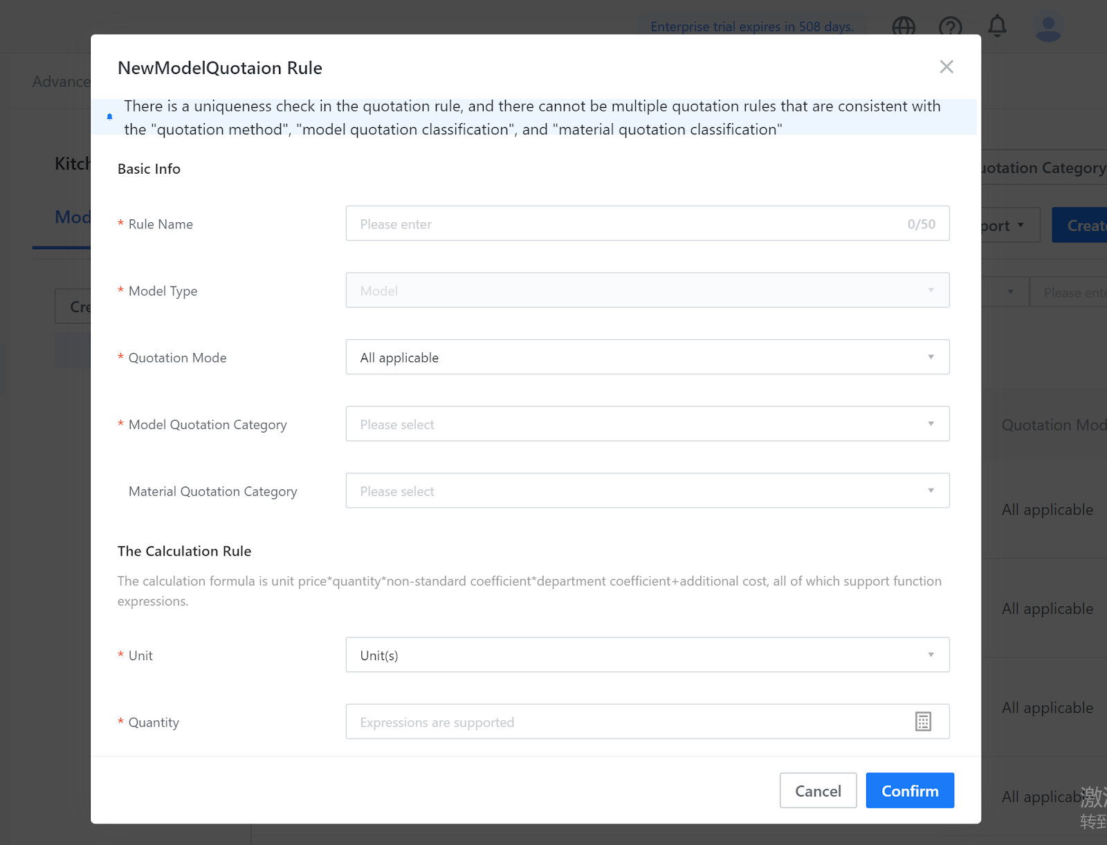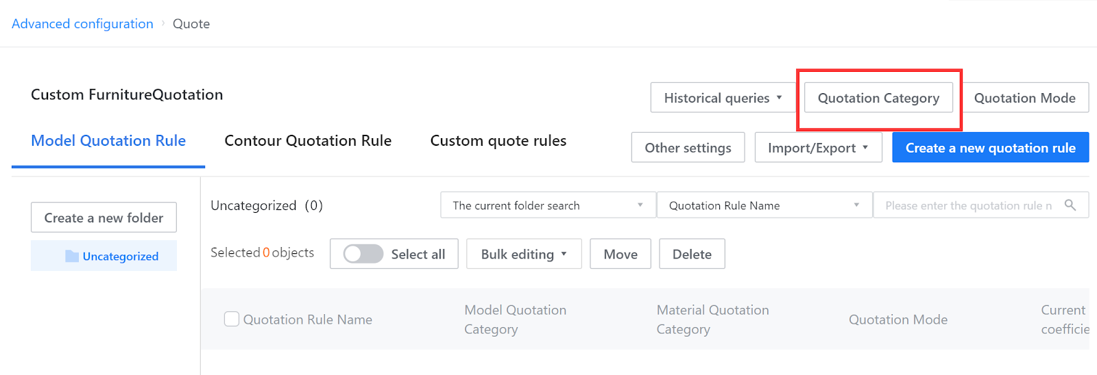 Material quotation categories may or may not be optional. When the model quotation is related to the material, quotation rules need to be set separately; otherwise, it is not necessary to choose.