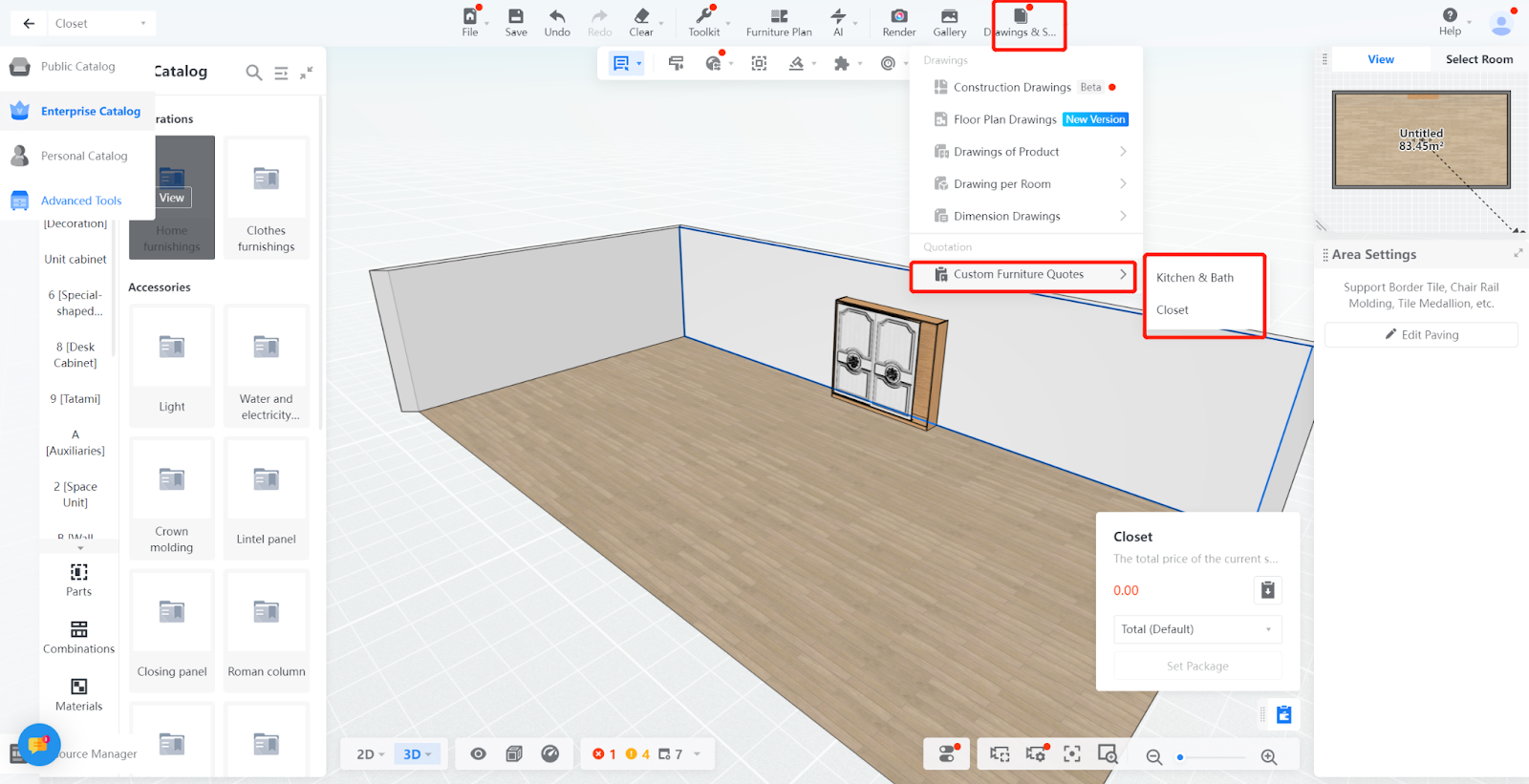 Real-time quotation can be seen in the lower right corner of the tool, priced according to the default quotation method. And other quotation methods can be selected.