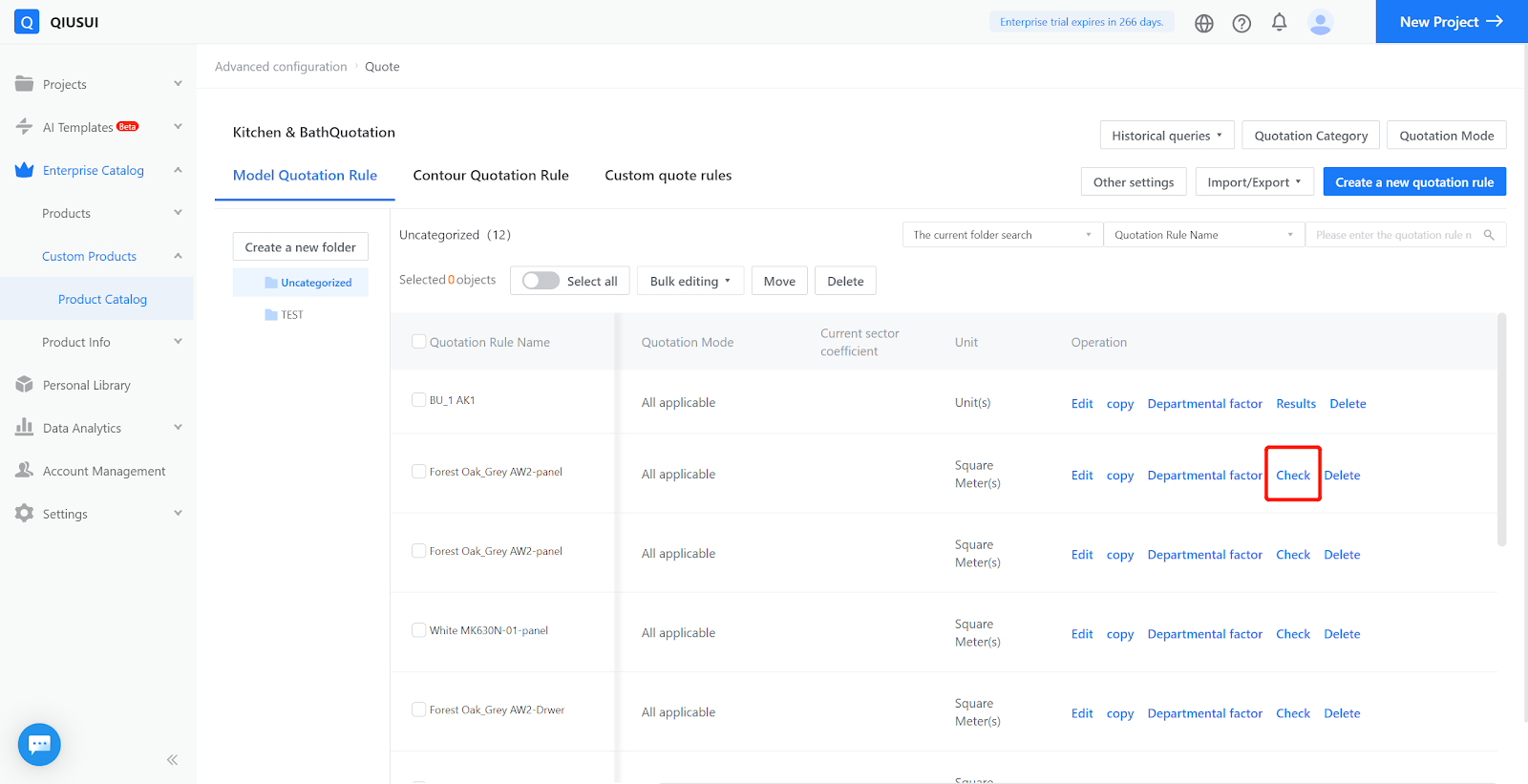 Quotation rules involve formula calculations, quotation categories, and quotation objects, which are prone to errors. To prevent situations where the tool discovers quotation problems and returns to modification, verification can be used to check whether quotation rules are correct on the quotation settings page.