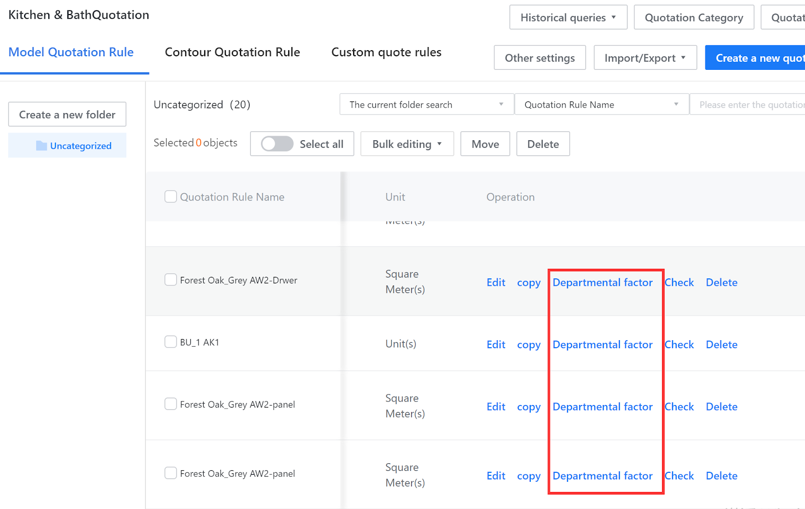 Quotation is a final price obtained by linking quotation objects with quotation rules through quotation categories. On this basis, quotation of different situations can also be achieved through Departmental factor and quotation methods.