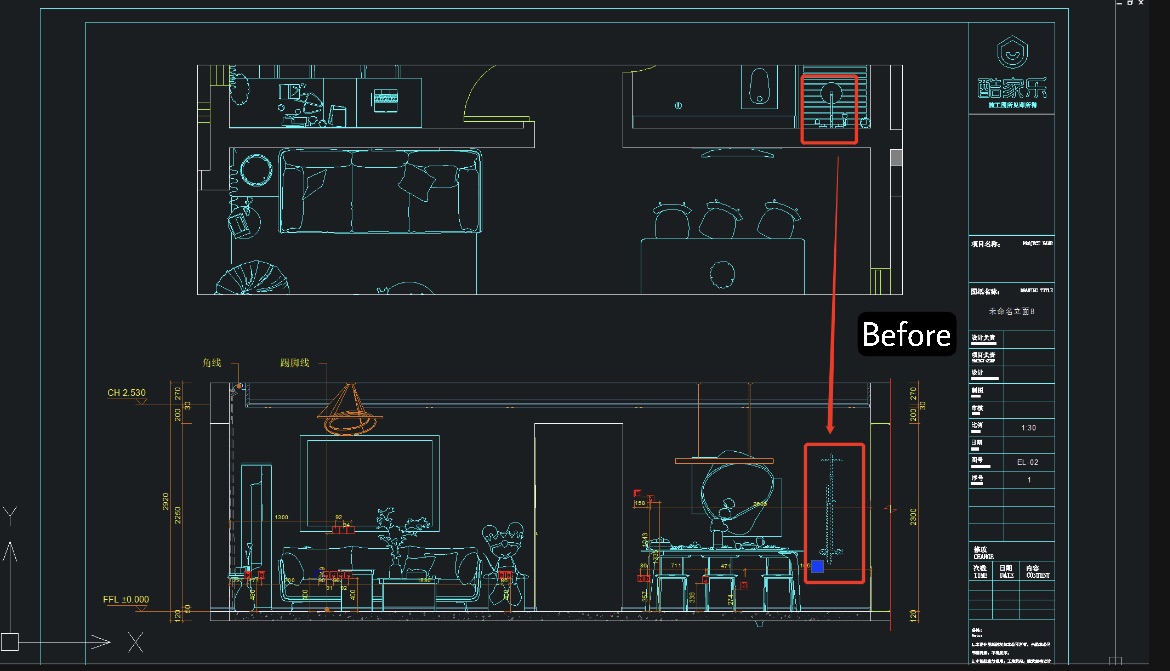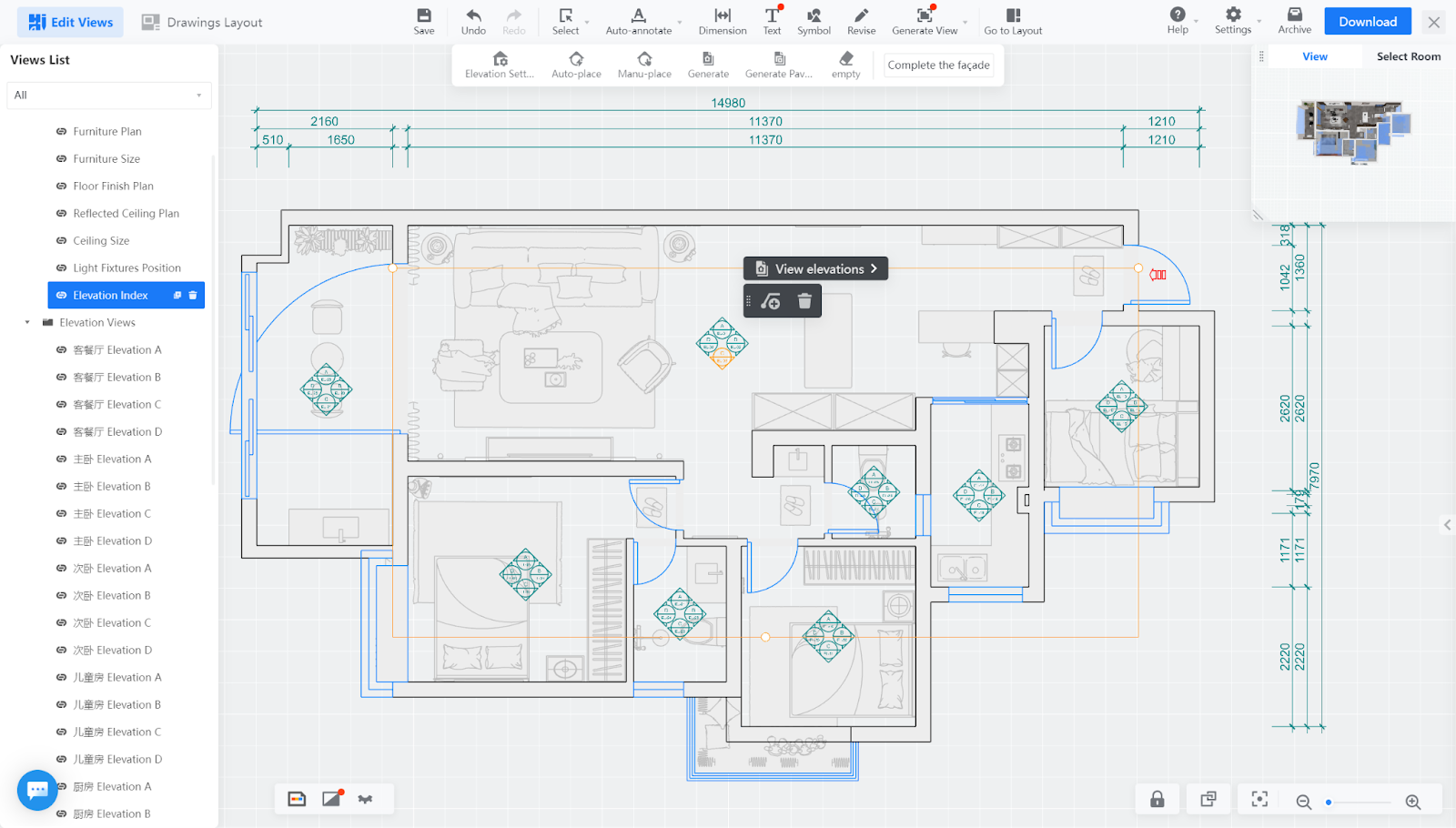 When the user selects the scope of the elevation, the content of the unwanted room will be filtered out if it is included in the selection area.