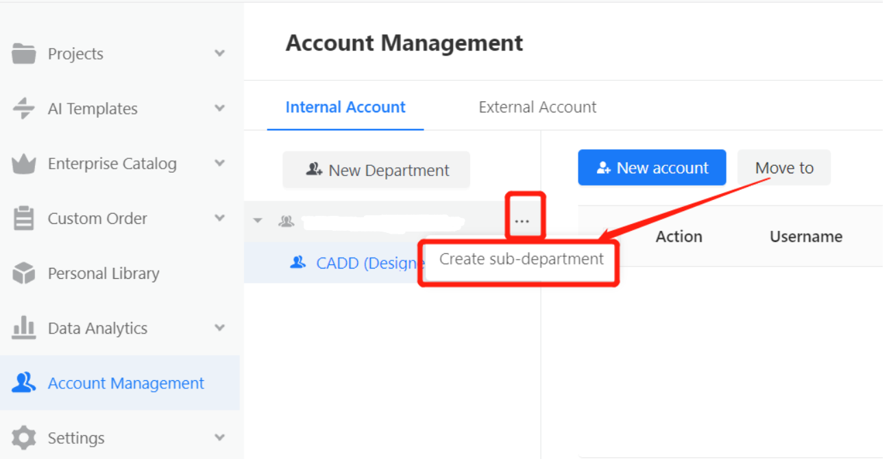 1.1Enter the enterprise library, click the account management, enter the sub-account management interface