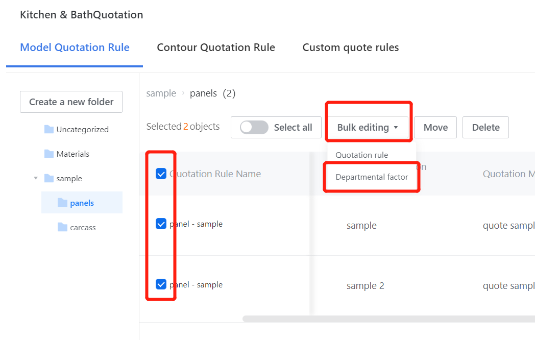 2.3You can also select multiple quotation rules, then mouse over the "Bulk Edit" button, and click "Department Factor" in the automatically expanded menu to enter the grouping factor editing page, and set it in the same way. After the completion of the selected quotation rules for different groups of coefficients are different.