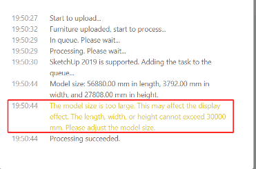 Upload error: the model size is too large, the length,width,or height cannot exceed 30,000mm.
