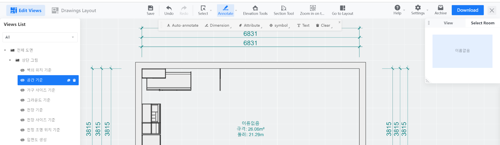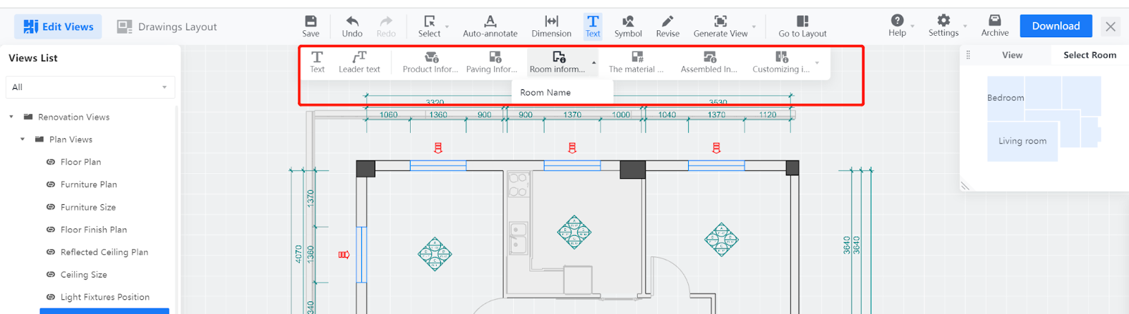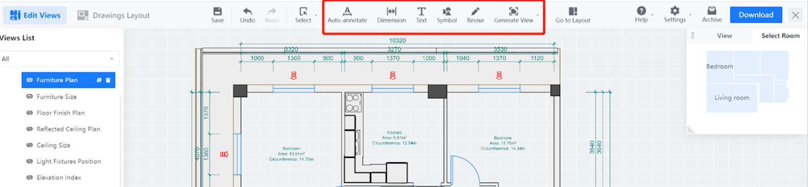 1)There's no more Annotate button in the top bar of the Edit Views page. Instead, the Auto-annotate, Dimension, Symbol and Text buttons can be found directly in the top bar.