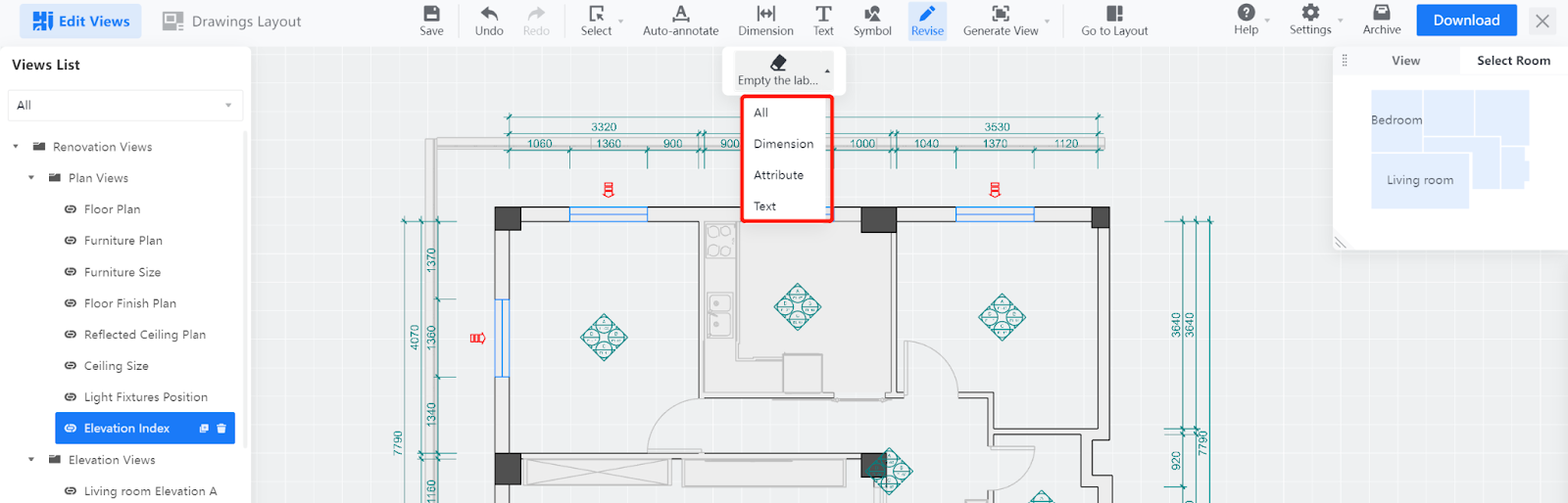 3) There’s no more Clear button in the drawing interface. Instead, the Revise button in the top bar serves the same function. That means, you can delete annotations by clicking the Revise button on the top bar and choosing the type that you want to remove.