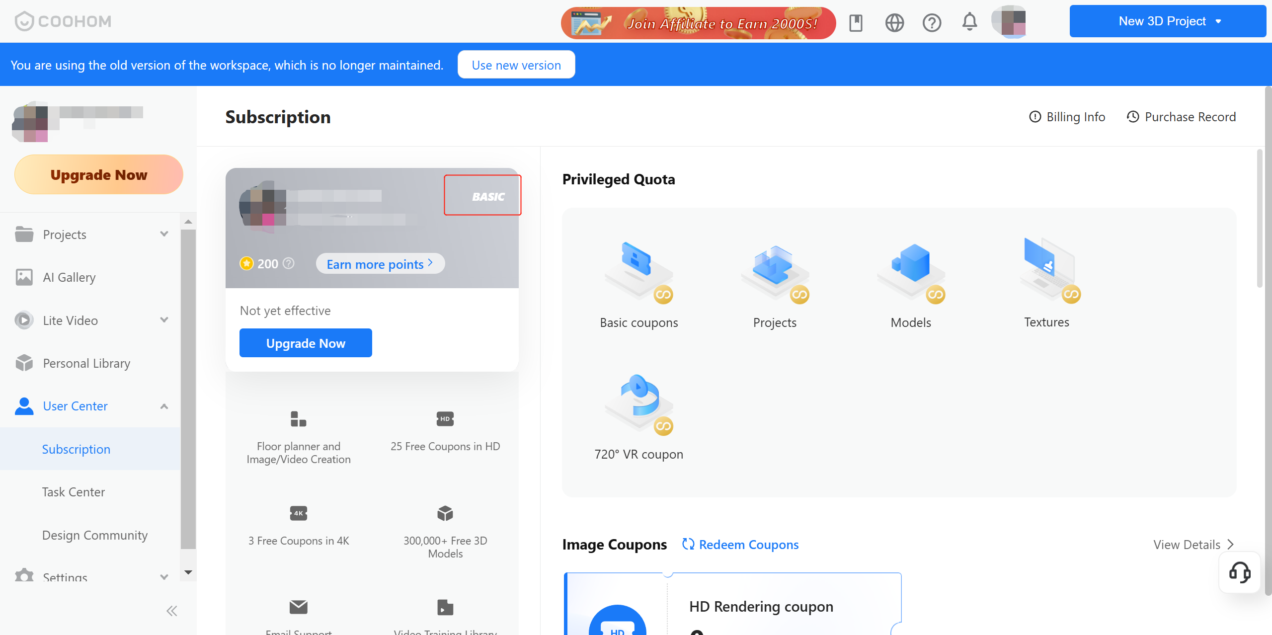 When you create a Coohom account using your email address, you automatically receive a Basic Account. This means that right from the start, you have access to a range of features that allow you to explore the platform and begin designing your spaces without any financial commitment.