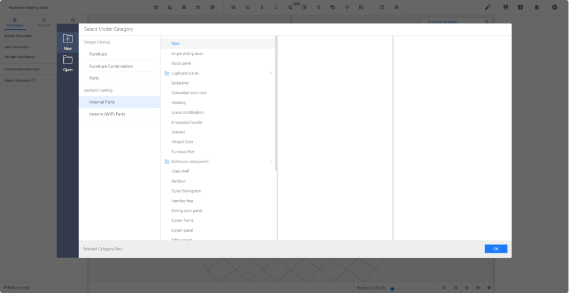 Custom Furniture —Create Asset—Parametric Model Library—New—Internal Parts—Door