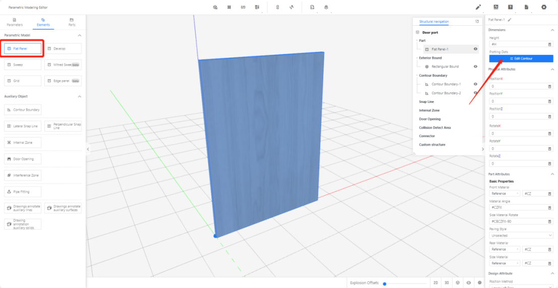 3.1 Import a flat panel from elements library and edit it contour