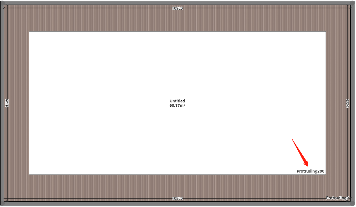 When you create a ceiling extrusion in Advanced Tool- Construction, and go back to 2D Ceiling Mode, you will see the Protruding value you set before.