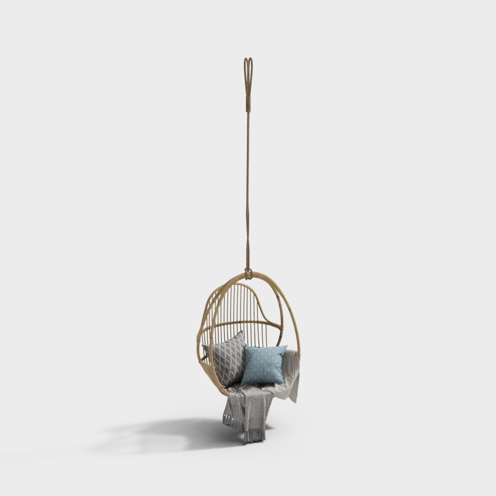 This stylish hanging chair 3D model, featuring low-poly design with natural wood and gentle gray tones alongside soft blue cushions, creates a fresh and comfortable atmosphere. Perfect for interior design, game development, and VR/AR projects, it offers a cozy space for relaxation. Available for free usage, it integrates seamlessly into diverse creative endeavors.