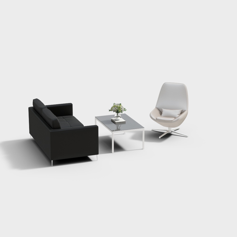 Transform your space with this elegant modern 3D furniture set featuring a black leather sofa and a beige swivel chair. The low-polygon design merges simplicity with functionality, offering realistic textures and a stylish presence in any room. The gray glass coffee table adorned with a charming white flower bouquet introduces warmth and vitality. Perfect for designers, architects, and game developers, this model is ideal for interior design, gaming scenes, or VR applications. Emphasizing a blend of modern aesthetics and practical use, this furniture set can easily be integrated into various environments. It is available for free usage, enhancing creativity without restrictions.